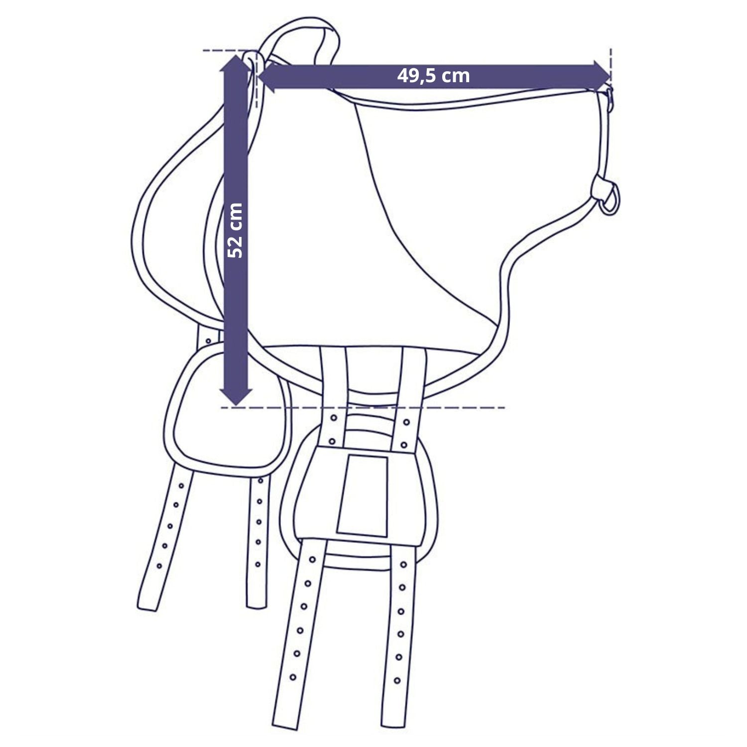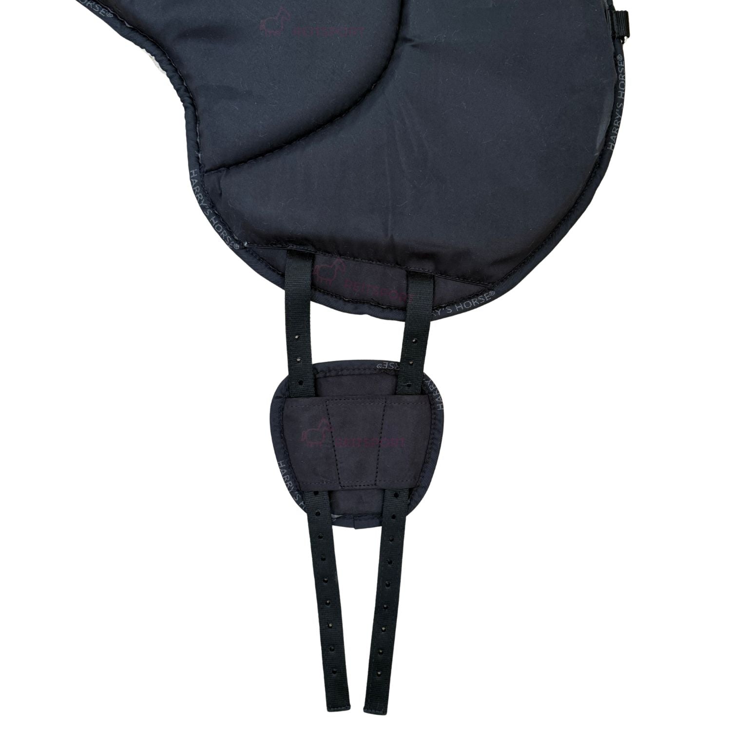Die Gurtstrippen des Bareback Sattels sind als sogenannte V-Gurtung ausgeführt, die den Druck auf das gesamte Bareback Pad gleich verteilt und nicht nur auf wenige Dornfortsätze als Punktlast einwirkt.