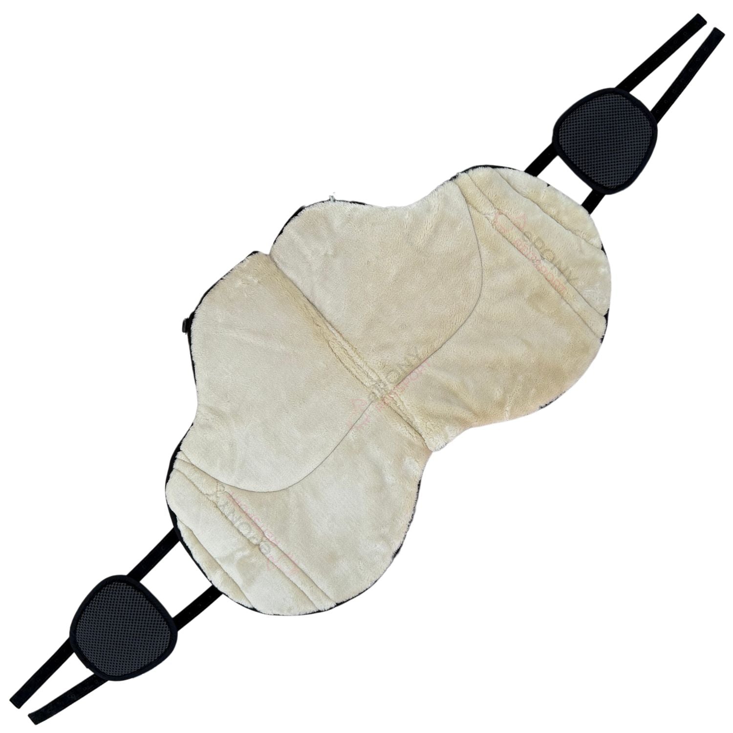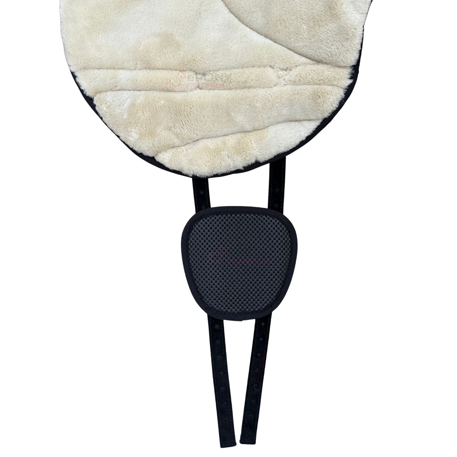 Die Unterseite des Bareback Pad Faux Fur besteht aus einem rutschhemmendem hellbeige Kunstfell. Dies sichert eine optimale, stabile Position auf dem Pferderücken und passt sich der Auflagefläche des Pferderückens an.