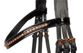 Eleganz trifft Trend! Die schwedisch kombinierte, schwarze Lacktrense Chique Rosegold von Harry's Horse ist extrem elegant, pferdefreundlich und mit den roségoldenen Details ein echter Trendsetter.