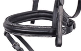 Das geschwungene schwarze Lederstirnband ist dezent und stilvoll ausgeführt. Die weiche Unterlegung rundet diese durchdachte Trense pferdefreundlich ab.