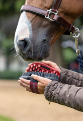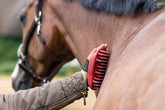 Die weichen Gumminoppen sorgen bei deinem Pferd einen revitalisierenden und beruhigenden Massageeffekt. Der Mouse Groomer ist sowohl für das tägliche Putzen des Pferdes geeignet als auch für die Verwendung mit Wasser, um Verklebungen zu entfernen und eine Tiefenreinigung zu erzielen. Durch die ergonomische Form lässt sich der Mouse Groomer mit einem elastischen Riemen leicht halten, um Komfort und Stabilität zu gewährleisten.