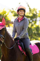 Der Zwei-Wege-Frontreißverschluss der Astra Jacke sorgt für eine angenehme und praktische Handhabung und ist mit einem kontrastfarbigen Reißverschlussschieber in papaya versehen. Zwei seitliche Fronttaschen mit Reißverschluss und ebenfalls kontrastfarbigem Reißverschlussschieber in pink runden den durchdachten Stil ab. Die Fronttaschen eignen sich für die sichere Aufbewahrung von Schlüsseln, Handschuhen oder Leckerlis für dein Pferd.