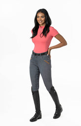 Der LeMieux Short Sleeve Base Layer aus der „My LeMieux“ Bekleidungslinie ist ein Kurzarmshirt aus einem technischen Material, das gerade an warmen und heißen Tagen überzeugt. Dieses Kurzarmshirt ist der perfekte Begleiter für aktive Reiter, die sowohl modische als auch funktionelle Reitbekleidung bevorzugen. Das Kurzarmshirt schützt vor starker Sonneneinstrahlung mit einer Anti-UV Protection 50+ bei langen Trainingseinheiten in der Sonne. Der Short Sleeve Base Layer gehört neben den farblich passenden LeMieux Schabracken zu den bekanntesten und beliebtesten Reitsportartikeln der Marke LeMieux. Das zarte 4-Wege-Stretch-Tec-Jersey Material ist antimikrobiell und liegt angenehm auf der Haut, durch die perfekt abgestimmte Passform. Auftretende Feuchtigkeit wird durch das schweißabsorbierende Material schnell abgeleitet und getrocknet, auch bei anstrengenden Trainingseinheiten. Die Belüftungsöffnungen unter den Ärmeln ermöglichen einen Luftstrom, der für ein angenehmes Klima an heißen Tagen sorgt. Der praktische Kragen mit Reißverschluss verleihen dem Shirt einen eleganten letzten Schliff.
