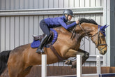 Einmal tintenblau bitte! Die Farbe der Springschabracke ink blue ist ein besonderer Blauton, der einfach begeistert. Ink blue sticht durch die Komposition von blau und rot aus allen Blautönen heraus. Diese tolle Schabracke in ink blue begeistert und unterstreicht die natürliche Schönheit deines Pferdes. Die LeMieux Color Collection hält eine riesige Farbauswahl bereit und bringt Farbe in die Reiterwelt.