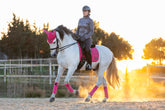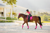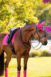 Fruchtig, frisch und knallig! Mit diesen drei Wörtern lässt sich die Schabracke Loire Classic Satin Dressage Square von LeMieux in der Farbe waterlemon beschreiben. Die Farbe waterlemon ist ein leuchtender, kräftiger Pinkton, der an das saftige Fruchtfleisch einer Wassermelone erinnert. Schon von weitem kann man die leuchtende Farbe watermelon gut erkennen. Die Dressurschabracke in watermelon lässt sich perfekt mit Grautönen oder dunkleren Farben kombinieren, aber auch andere kräftige Farben können bewusst kombiniert werden.