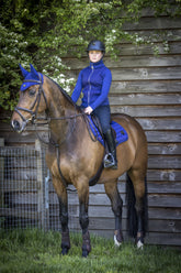 Einmal tintenblau bitte! Die Farbe der Springschabracke ink blue ist ein besonderer Blauton, der einfach begeistert. Ink blue sticht durch die Komposition von blau und rot aus allen Blautönen heraus. Diese tolle Schabracke in ink blue begeistert und unterstreicht die natürliche Schönheit deines Pferdes. Die LeMieux Color Collection hält eine riesige Farbauswahl bereit und bringt Farbe in die Reiterwelt.