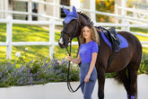 Diese tolle Springschabracke Close Contact von LeMieux aus der Luxury Suede Kollektion in Wildlederoptik mit klassischer D-Ring Befestigung ist eine optimale hochfunktionelle Sattelunterlage. Die quadratische Square Steppung ist bei dieser Schabracke kleiner ausgeführt, was für mehr Stabilität sorgt und sich dem Pferderücken besonders gut anpasst. Hier wurden in Funktionalität, Qualität, Design und bei den verwendeten Materialien keine Kompromisse gemacht. Die Schabracken von LeMieux zeichnen sich durch ihre Langlebigkeit aus, die natürlich auch für Nachhaltigkeit sorgt und nicht zuletzt verbraucherfreundlich ist.