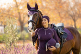 Man kann nicht genug Schabracken haben, höchstens zu wenig Pferde! Das wird besonders bei der wunderschönen Schabracke Luxury Suede Close Contact Square in der Farbe fig von LeMieux deutlich. Die Farbe fig ist ein dunkler Violettton der extrem harmonisch wirkt und sich mit Weiß- und Grautönen besonders gut kombinieren lässt. Die Farbe fig passt zu allen Pferdefarben und ist besonders durch ihren dunklen Farbton, optisch unempfindlicher bei schlechten Boden- und Wetterverhältnissen. Darum darf die LeMieux Schabracke Luxury Suede Close Contact Square in der Farbe fig nicht in deiner Schabrackensammlung fehlen.