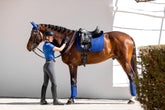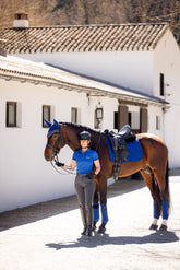 Die Schabracke von LeMieux in der Farbe benetton blue ist ein kräftiger, intensiver Blauton. Diese Farbe wirkt wie der strahlend blaue Himmel an einem Sommertag. Außerdem gehört die Farbe blau nicht ohne Grund zu den beliebtesten Farben im Reitsport, da unendliche Kombinationen möglich sind. Die LeMieux Color Collection hält eine riesige Farbauswahl bereit und bringt Farbe in die Reiterwelt.