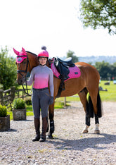 Eine schöne Kordel in der Farbe watermelon veredelt die Schabracke und das Einfassband besteht aus einer robusten Velours-Einfassung, die die Kanten des Pads sanft konturiert. Diese neue Technik hilft dabei, die perfekte Form des Sattelpads zu erhalten.