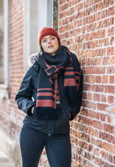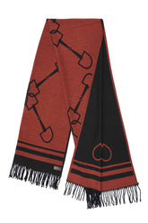 Der extrem weiche und wärmende Schal Valencia ist breit geschnitten, sodass dieser auch lässig über die Schultern getragen werden kann, sowie klassisch um den Hals. Tragbar als Winterschal, wärmend zu jeder Jahreszeit bei kühler, Witterung oder als Accessoires. Das modische, kontrastfarbige Pferdegebiss-Motiv einer D-Ring-Trense befindet sich auf beiden Seiten des Schals und sorgt für den eleganten englischen Country Style. Der Schal ist ein Blickfang im Stall, bei Outdoor-Aktivitäten, in der Stadt und als Alltagsbegleiter. Vielfältig kombinierbar ist die Farbe sienna mit hellen und dunklen Farbtönen. Die verspielten Fransen des Schals runden den klassischen Look ab.