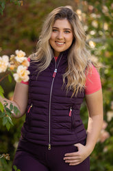 Die LeMieux Reitweste Nova Gilet in aubergine ist der ideale Begleiter an kühleren Tagen, nach einem anstrengenden Training oder einem Ausritt in den frühen Abend- oder Morgenstunden. Die Farbe aubergine ist ein dunkler Violetton der sich bestens kombinieren lässt.