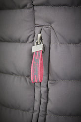 Die Weste ist mit einer weichen Steppung ausgestattet, die wärmt, aber nicht aufträgt. So kann die Weste im Zwiebel-Look über kurzärmeligen oder langärmeligen Trainingsshirts getragen werden. Der moderne Trichterkragen und die taillierte Passform geben der Reitweste ein dezentes und elegantes Äußeres. Der praktische Zwei-Wege-Frontreißverschluss bietet dir im Sattel die nötige Flexibilität, um die Weste auf deine Bedürfnisse als Reiter einzustellen. Die Seitentaschen sind mit einem Reißverschluss ausgeführt, damit Handy, Reithandschuhe etc. auch bei einem flotten Galopp nicht aus der Tasche fallen und sicher aufgehoben sind. Die Reißverschlussschieber ist an den Seitentaschen sowie am Frontreißverschluss der Weste mit verspielten Details in watermelon bzw. pink versehen.