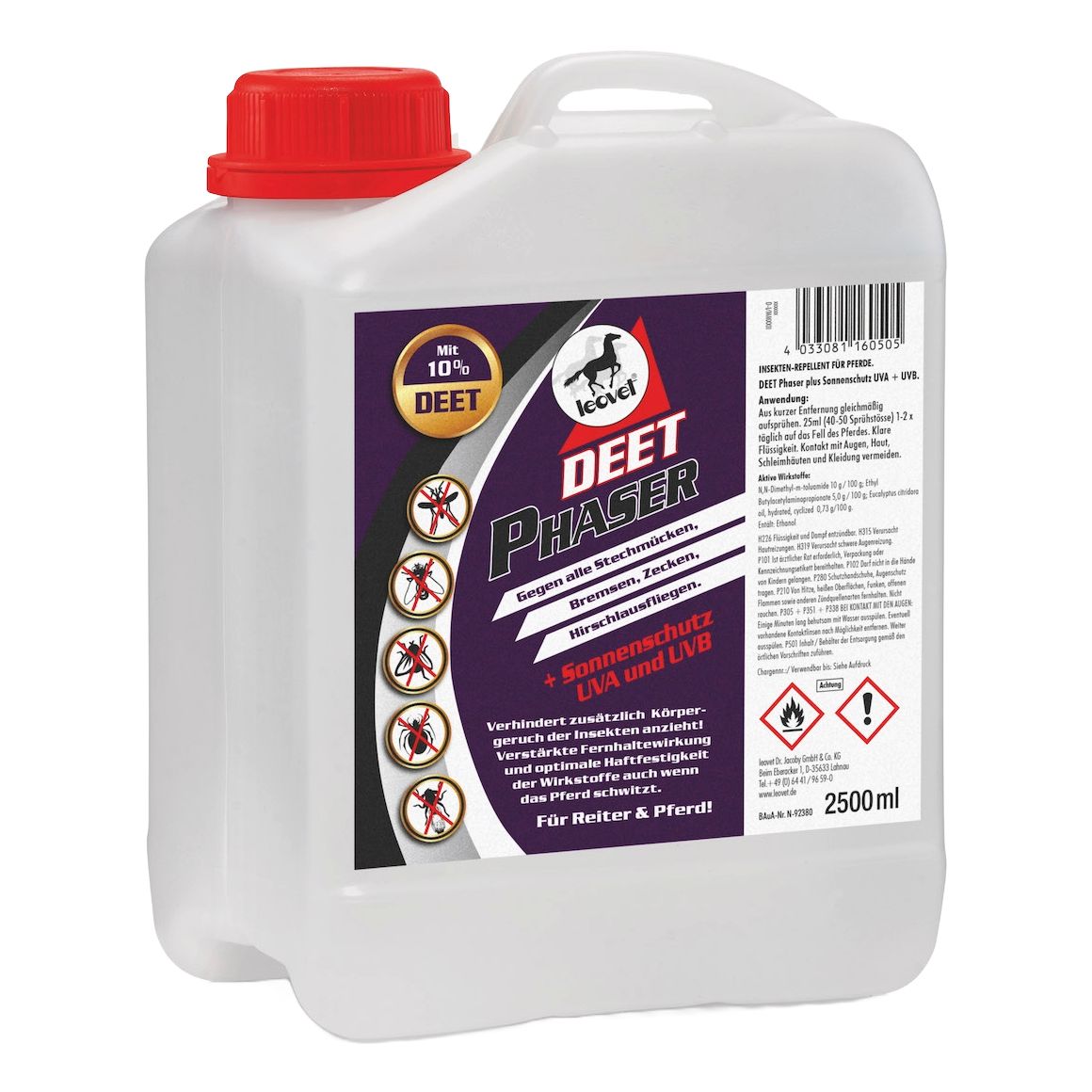 Das neue Fliegenspray Deet Phaser von leovet versprüht Sicherheit! Für Pferd und Reiter! Der DEET Phaser nutzt den Wirkstoff N,N-Diethyl-m-toluamid – kurz DEET - den Goldstandard unter den Wirkstoffen gegen Stechinsekten. Die Weltgesundheitsorganisation (WHO) empfiehlt diesen hochwirksamen Wirkstoff. Wirksamkeit und Effektivität wurden gründlich untersucht, kaum ein anderer Wirkstoff besitzt eine derart lange Wirkdauer und ein solch breites Wirkspektrum gegen Insekten.
