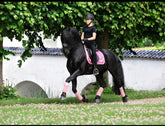 Die weichen Fleece Bandagen „My Passion“ in divine rosé bestechen durch ihre perfekt abgestimmten glitzernden Details. Die Farbe divine rose ist ein strahlender Roséton. Der Klettverschluss der Bandagen ist mit einem auffälligem silbernen Glitzerband versehen. Das Glitzerband funkelt bei jeder Bewegung deines Ponys oder Pferdes. Das silberne SD Design Logo befindet sich auf jeder einzelnen Bandage und rundet den stilvollen Auftritt ab. Die Bandagen „My Passion“ in divine rose passen perfekt zur „My Passion“ Schabracke in divine rose.