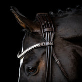 Das geschwungene Stirnband ist mit großen, klaren Rivoli-Kristallsteinen ausgeführt, die für den typischen SD Design Style sorgen. Die großen Kristallsteine funkeln bei jeder Bewegung deines Ponys oder Pferdes im Sonnenlicht. Dadurch wird die klare und luxuriöse Optik dieser rundgenähten SD Design Kandare perfektioniert.