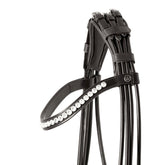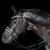 Das geschwungene Stirnband ist mit großen, glitzernden Rivoli-Kristallen besetzt. Der Zaum wurde unter Berücksichtigung der Anatomie des Pferdes entwickelt und wird mit einem neuen, speziell angefertigten, extra weichen Genickstück geliefert. Dieses Genickstück hat eine größere Kontaktfläche, wodurch der Druck auf das empfindliche Genick / die empfindlichen Nerven erheblich minimiert wird. Die Verschnallung im Genick sorgt für eine geordnete Optik dieser rundgenähten Dressurkandare und eine optimale Druckverteilung.
