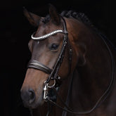Das geschwungene Stirnband ist mit großen, klaren, glitzernden 10mm Rivoli-Kristallen besetzt. Die Rivoli-Kristalle funkeln bei jeder Bewegung deines Ponys oder Pferdes.