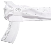 Der Brustlatz ist mit einer Kristallsteinanordnung im Explosionsmuster veredelt. Die kleinen Kristallsteine am Brustlatz glitzern und funkeln, bei Sonnenlicht bei jeder Bewegung und sorgen für, das gewisse „Extra“ im Dressurviereck. Das SD Design Logo ist dezent auf der Vorderseite des Brustlatzes eingestickt.
