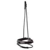 Das schwarze rundgenähte Reithalfter ist im Genick des Ponys oder Pferdes verstellbar und mit eleganten, schmalen Trageriemen ausgeführt. Der weiche unterlegte Nasenriemen ist mittig circa 5 cm breit und verjüngt sich seitlich auf 3 cm, damit kein Druck auf empfindliche Nerven ausgeübt wird und genug Platz für eine optimale Lage der Gebissringe vorhanden ist. Bei einer konische Schnittführung des Nasenriemens ist die Kontaktfläche mittig am größten und die einwirkenden Kräfte an der empfindlichsten Stelle des Nasenrückens können besser verteilt werden. Durch den breiten konischen Nasenriemen mit schwarzem Lack erhält jede rundgenähte Trense nicht nur eine einzigartige Optik, sondern auch einen pferdefreundlichen Komfort.