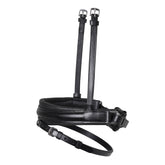 Ein dezenter und stilvoller Allrounder ist das schwedisch kombinierte, schwarze Reithalfter von SD Design. Das elegantes weiche schwarze Leder schmiegt sich um den Nasenrücken deines Ponys oder Pferdes. Der weiche Nasenriemen ist mittig circa 5 cm breit und verjüngt sich seitlich auf 3 cm, damit kein Druck auf empfindliche Nerven ausgeübt wird und genug Platz für eine optimale Lage der Gebissringe vorhanden ist. Durch den breiten konischen Nasenriemen erhält das Reithalfter nicht nur eine einzigartige Optik, sondern auch einen pferdefreundlichen Komfort. Das weiche Neopren, mit dem der Nasenriemen gepolstert ist, sorgt für eine optimale Druckverteilung. Das Reithalfter ist beidseitig verstellbar, mit kurzen Reithalfter Trageriemen.
