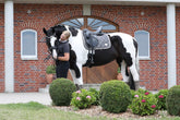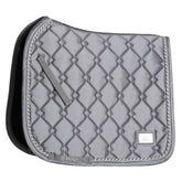 Die silberne Schabracke enthält in der Steppung ein Edelsteinmuster, die GEM Steppung. Beim Reiten liegt die Schabracke sehr gut und verrutscht nicht. Durch den anatomischen Schnitt lässt sich die Schabracke im Bereich des Widerrists gut kammern und gibt genug Raum für Mähne und Widerrist. So kann kein Druck auf die empfindlichen Dornfortsätze oder Widerrist entstehen. Die Innenseite besteht aus einzigartigen Quick Dry-Material, wodurch die Schabracke sowohl atmungsaktiv als auch schweiß- und wärme transportierend ist.