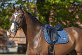 Wo bitte geht’s nach Hollywood? Genau hier geht es zur Hollywood Glamorous Schabracken-Kollektion von SD Design. Die Hollywood Glamorous Schabracke blueberry twinkles glitzert und funkelt, wie ein Meer aus Diamanten, bei jeder Bewegung deines Ponys oder Pferdes und wird ihrem Namen gerecht. Die Farbe blueberry twinkles ist ein wunderschöner Blauton. Das einzigartige Material der Schabracke macht dies möglich. Doch dabei hat SD Design nicht nur Wert auf das besondere Design der Hollywood Glamorous Schabracke gelegt, sondern auch auf Funktion.