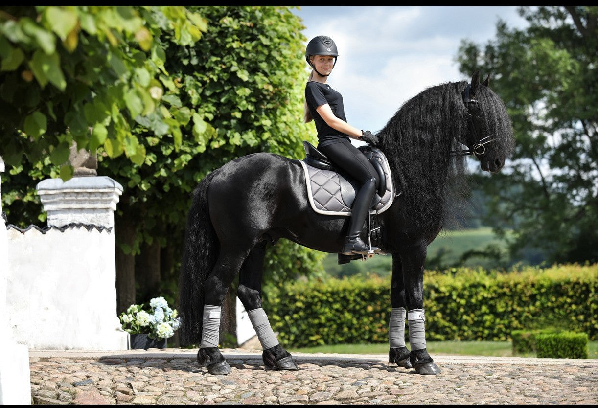 ePony Tipp: Die Schabracke „My Passion“ in der Farbe silver glaze ist ein echter Blickfang und mit viel Leidenschaft entworfen worden. Die edel schimmernde, graue Schabracke passt zu allen Pferdetypen. Sichere dir die passenden Bandagen aus der „My Passion“ Kollektion gleich mit dazu. Dieser ePony Tipp ist heiß!
