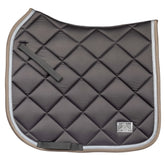 Die Schabracke „My Passion“ in silver glaze besticht durch ihre glänzende und elegante Satin-Oberfläche, einer weichen großen Steppung und nicht zuletzt dem breiten funkelnden Glitzer-Banding. Die Farbe silver glaze ist ein wunderschöner heller Grauton.