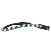 L'unique blue zircon einfach einzigartig! Das geschwungene, elegante schmale Stirnband ist mit großen 10 mm Rivoli-Kristallen besetzt und wirklich atemberaubend. Das Stirnband ist abwechseln mit den Steinfarben crystal und blue zircon Rivoli-Kristallen besetzt. Die Rivoli-Kristalle funkeln bei jeder Bewegung des Pferdes und sorgen einen eleganten Auftritt.