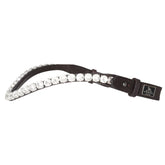 Absolut einzigartig ist das braune Stirnband L'unique von SD Design mit Schnellverschluss. Das schmale und tief geschwungene Stirnband ist mit 10 mm Rivoli-Kristallsteinen besetzt und wirkt extrem elegant. Der Stirnriemen ist an der Ober- und Unterseite nicht vernäht, sodass der Fokus auf den hellen klaren Kristallsteinen liegt, die bei jeder Bewegung deines Ponys oder Pferdes funkeln. Das L'unique Stirnband veredelt jede Trense und ermöglicht das Zusammenstellen deiner individuellen SD Design Trense. Vielseitige Kombinationen sind möglich.