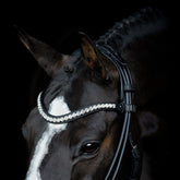 Das geschwungene, schmale Stirnband ist mit großen klaren Kristallsteinen ausgeführt. Die 10 mm großen Rivoli-Kristallsteine sorgen für einen atemberaubenden Glitzereffekt. Die Kristallsteine funkeln bei jeder Bewegung deines Ponys oder Pferdes im Sonnenlicht. Dadurch wird die klare und luxuriöse Optik dieser rundgenähten SD Design Trense perfektioniert.