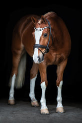 Das neue Stirnbanddesign von SD Design macht das Austauschen, Anbringen und Reinigen des Stirnbandes einfacher denn je. Durch einen kleinen Metallpin an den Lederschlaufen kann das Stirnband an jeder Seite geöffnet werden, ohne dass du die Trense auseinanderbauen musst. Diese Innovation erleichtert die Handhabung der Trense enorm. Die Stirnbandschlaufe ist auf der Innenseite mit einem Grip-Material ausgestattet, dass ein Herunterrutschen oder Verrutschen des Stirnbandes vorbeugt.