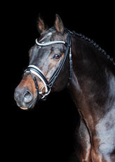Die schwarze rundgenähte Trense Duke de Niro gehört zu den modernsten und funktionellsten Dressurtrensen, die SD Design bisher entwickelt hat. Um eine extrem klare Optik zu erzielen und auf störende Schnallen an den Backen- oder Seitenstücken zu verzichten, ist die schwedisch kombinierte Trense im Genick zu verschnallen. Dadurch werden die Kräfte gleichmäßig verteilt. Das wirklich extrem weiche, doppelt gepolsterte, anatomisch geformte Genickpolster hat eine größere Kontaktfläche für eine optimale Druckentlastung. Dies sorgt für einen Druckausgleich und entlastet die empfindlichen Bereiche und Nerven. Für mehr Bewegungsfreude und Einsatzbereitschaft deines Ponys oder Pferdes.