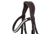 - braune Neoprenpolster an Genickstück und Nasenriemen für optimale Druckverteilung und Komfort