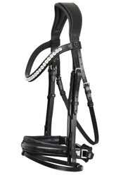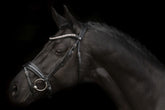 Das geschwungene Stirnband ist mit großen, glitzernden Rivoli-Kristallen besetzt. Der Zaum wurde unter Berücksichtigung der Anatomie des Pferdes entwickelt und wird mit einem neuen, speziell angefertigten, extra weichen Genickstück geliefert. Dieses Genickstück hat eine größere Kontaktfläche, wodurch der Druck auf das empfindliche Genick / die empfindlichen Nerven erheblich minimiert wird.