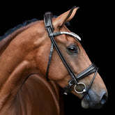 Das neue Stirnbanddesign von SD Design macht das Austauschen, Anbringen und Reinigen des Stirnbandes einfacher denn je. Durch einen kleinen Metallpin an den Lederschlaufen kann das Stirnband an jeder Seite geöffnet werden, ohne dass du die Trense auseinanderbauen musst. Diese Innovation erleichtert die Handhabung der Trense enorm. Die Stirnbandschlaufe ist auf der Innenseite mit einem Grip-Material ausgestattet, dass ein Herunterrutschen oder Verrutschen des Stirnbandes vorbeugt.