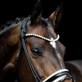 Das geschwungene, schmale Stirnband ist mit großen und klaren 10 mm großen Kristallsteinen ausgeführt. Die großen Kristallsteine funkeln bei jeder Bewegung deines Ponys oder Pferdes und sorgen für einen atemberaubenden Glitzereffekt. Die klare und luxuriöse Optik dieser rundgenähten SD Design Trense wird mit diesem Stirnband abgerundet.