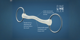 Achte beim Einschnallen darauf, dass die Ringe frei beweglich bleiben und die Maulwinkel nicht eingeklemmt werden. Durch das ovale Profil der Fine Line Serie hat das Gebiss eine definierte Ober- und Unterseite – es liegt dadurch sehr stabil und definiert im Pferdemaul.