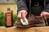 Vor Gebrauch schütteln. ZEDAN Lederglanz mit einem weichen Baumwolltuch oder einem Poliertuch gleichmäßig auf das Leder auftragen. Einige Minuten trocknen lassen und mit einer feinen Glanzbürste oder Tuch polieren.